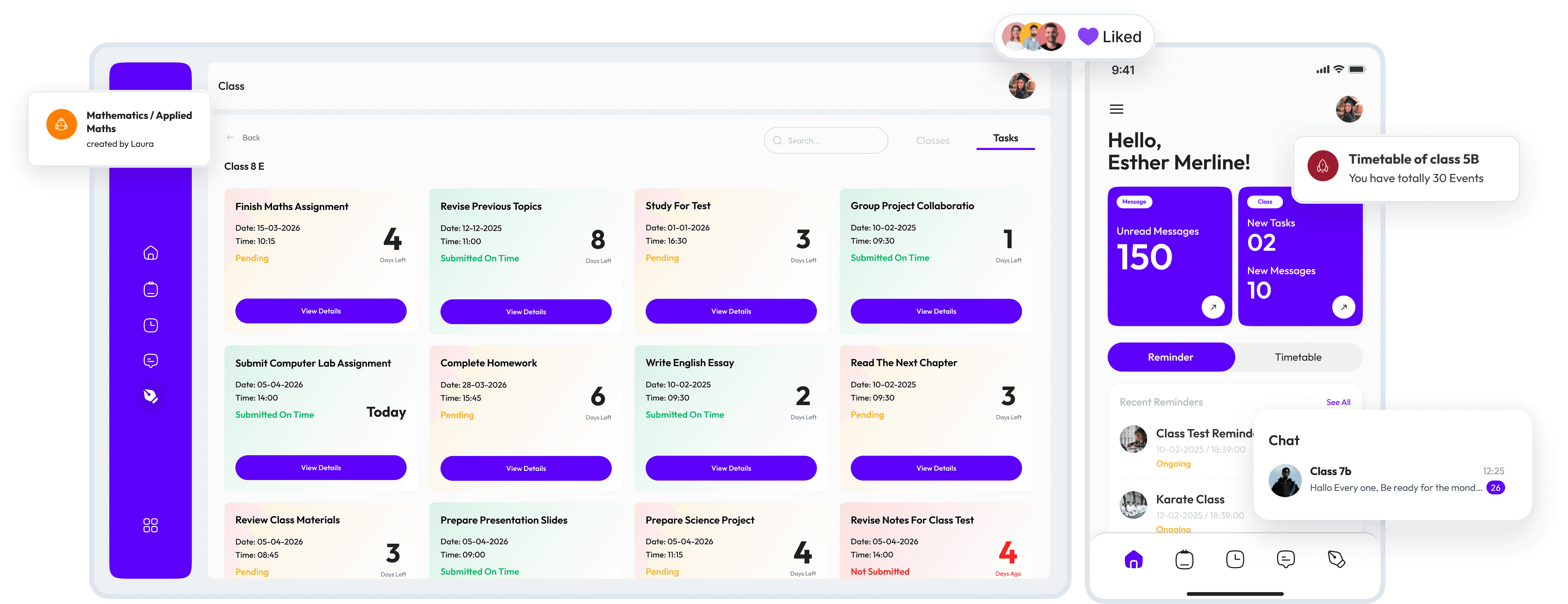 Set and send reminders for important events, assignments, and deadlines